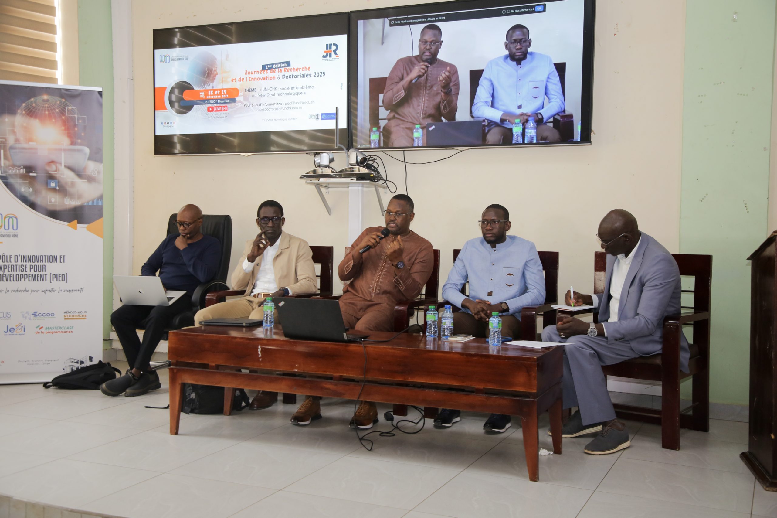 Les Journées de la Recherche et de l’Innovation (JRI) de l’Université numérique Cheikh Hamidou Kane (UN-CHK) est une initiative du PIED pour servir d’espace de réflexion, de partage et de valorisation des travaux scientifiques et initiatives innovantes à la communauté universitaire. Elles visent à promouvoir l’innovation et la recherche appliquée au service du développement durable.